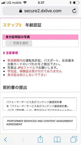 次は3ステップとして「年齢認証」を行います。写真付きの身分証明証をアップロードします。(スマホからでも簡単にできます)